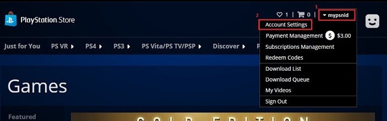 ۵. پس از ورود به PlayStation STORE اطلاعات حساب کاربری نوشته که بعد از کلیک روی آن حساب کاربری باز میشود. سپس روی Account Settings کلیک کنید.